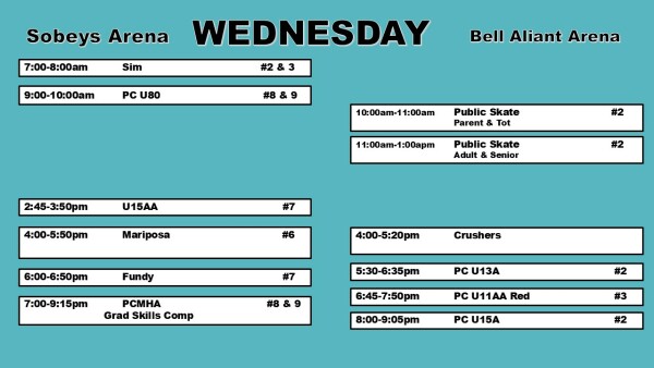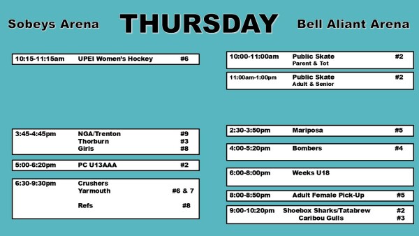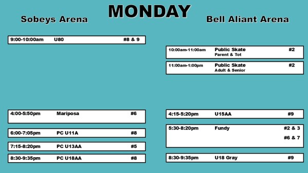 Weekly Ice Schedule Mar 2 - Mar 8 Weekend schedule will be updated on Thursday. * Schedules are subject to change